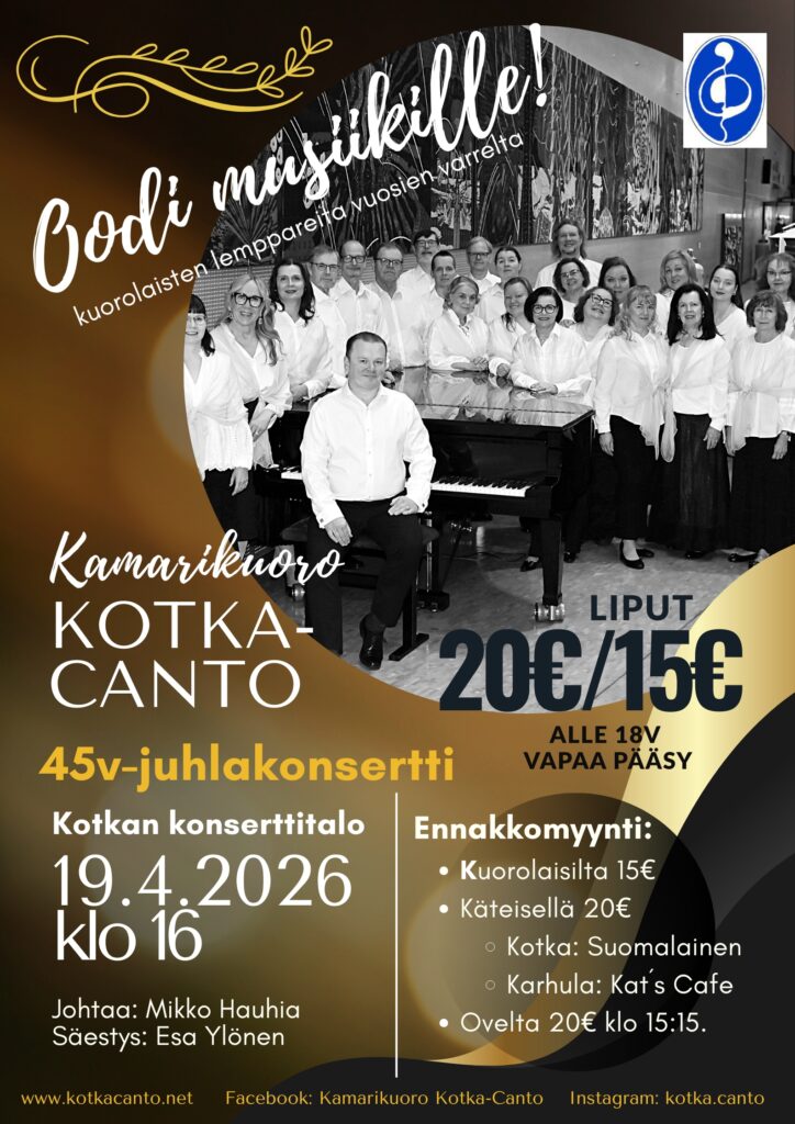 Su 19.4.2026 klo 16 Kotkan konserttitalo ”Oodi musiikille”-juhlakonsertti